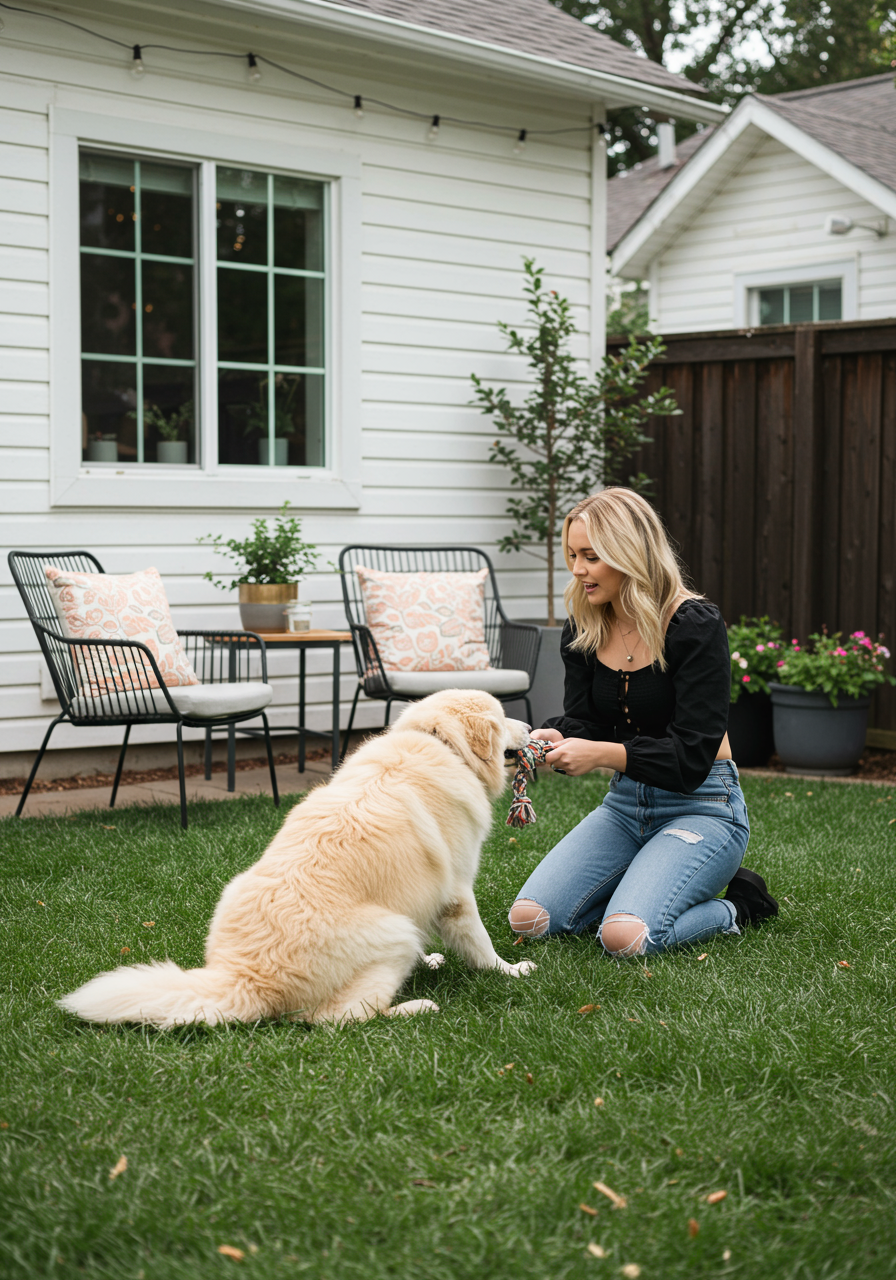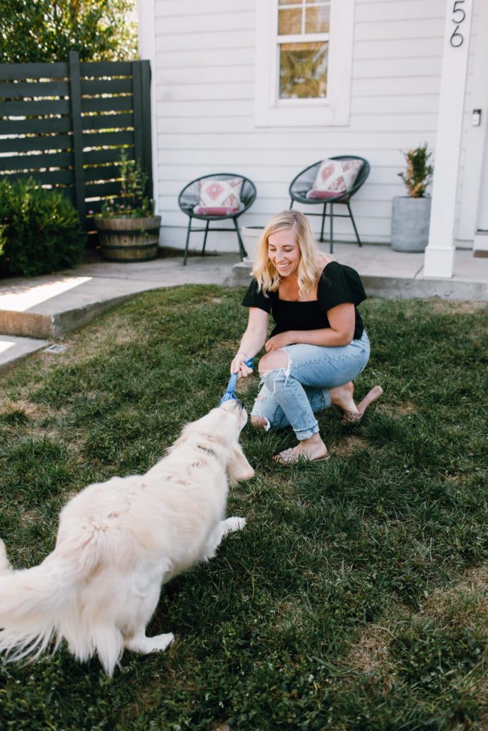 I think the part I’ve loved most about my home is having a place that is all mine that I can put my special touch on. I also love my fenced in backyard where I spend a lot of time playing with my golden retriever pup, Leo.